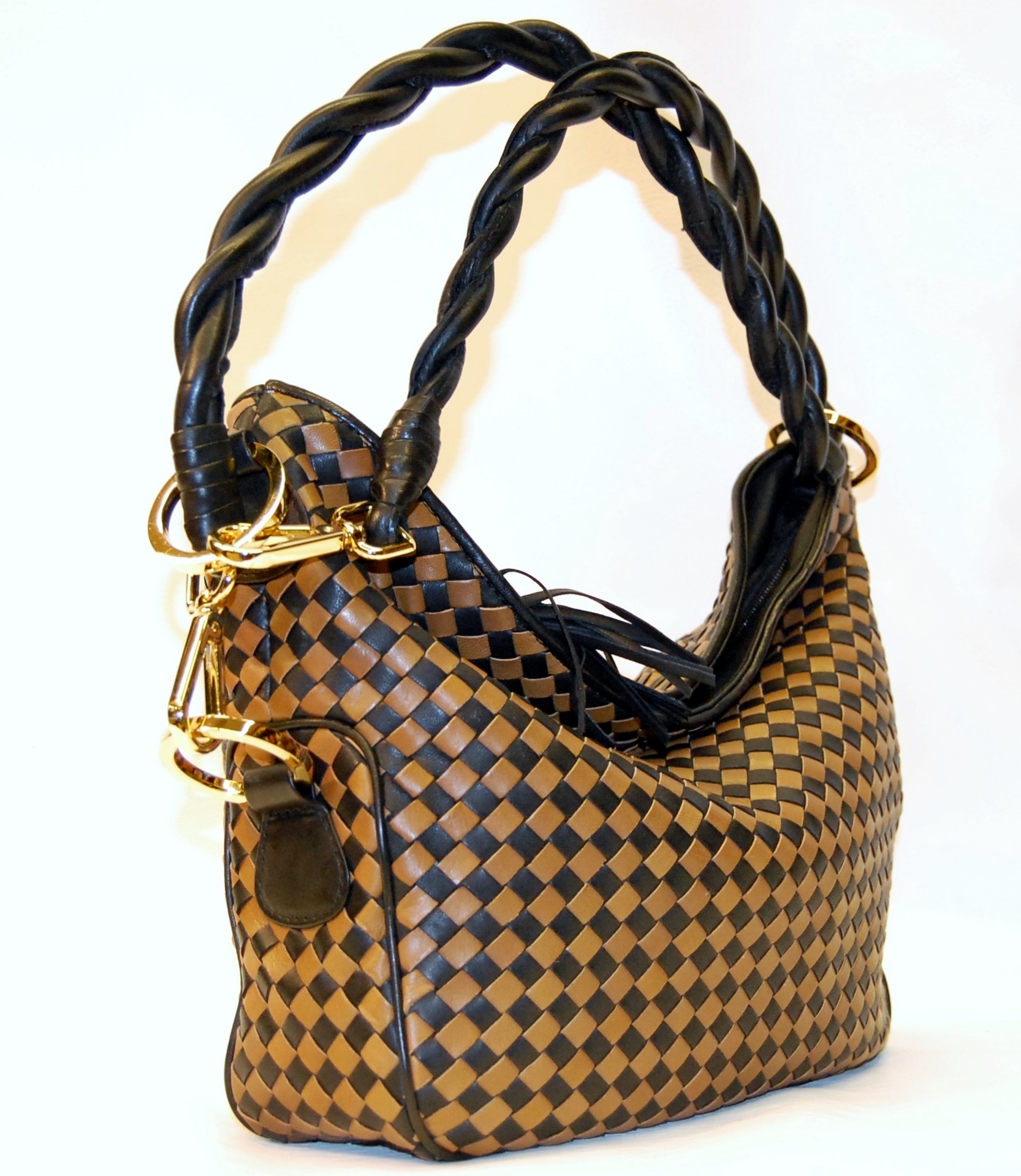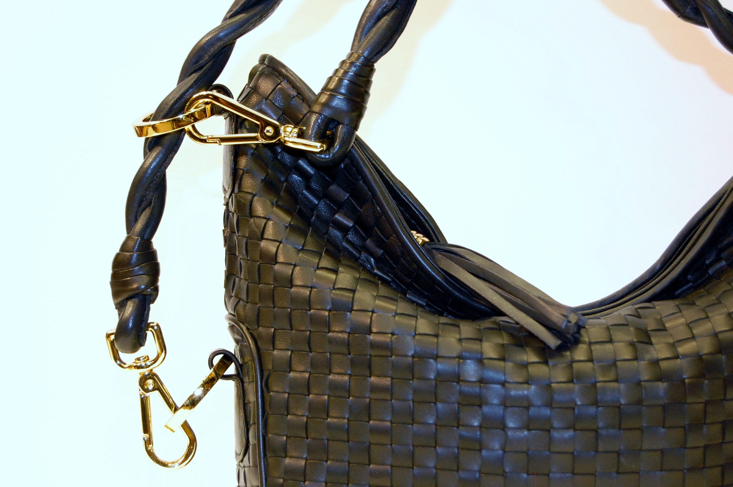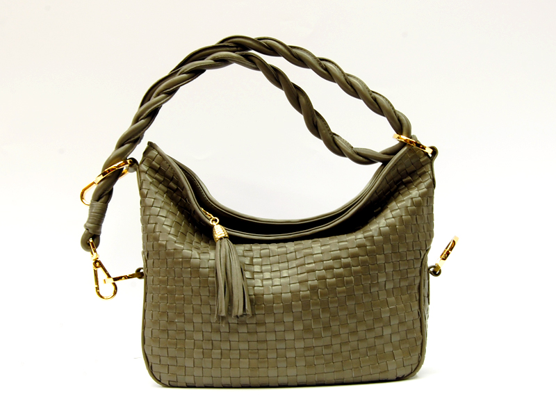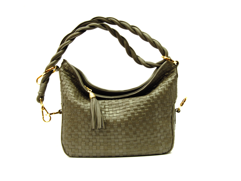 Borsa intrecciata in nappa di prima scelta con fodera interna in pelle e tracolla regolabile
